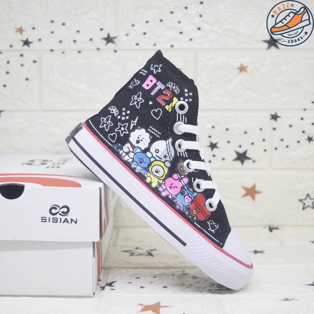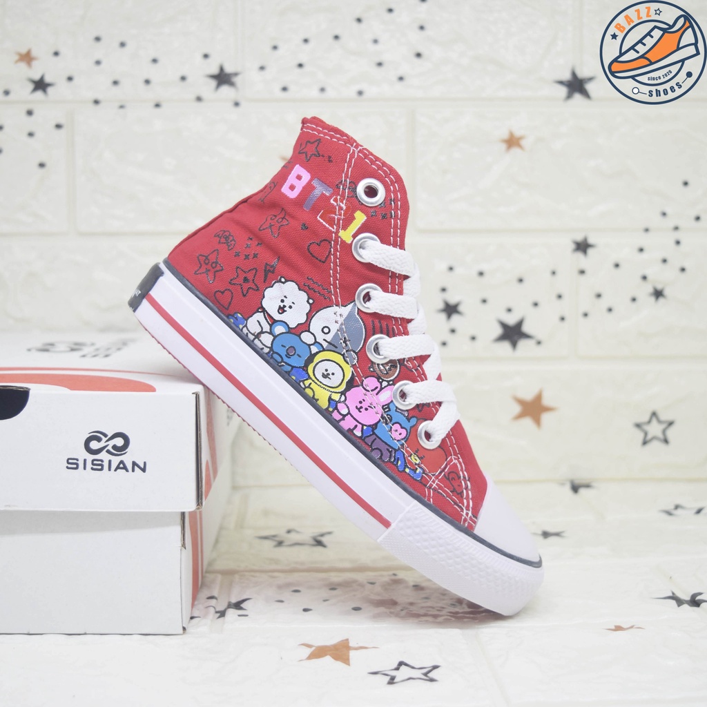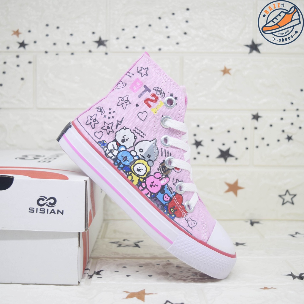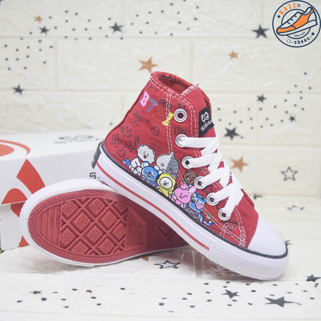 Alasan kenapa harus beli Sepatu Anak Cewek Cowok Sisian BT21 Sneakers Anak Perempuan Laki Laki Boots Tali Canvas Premium Outsole Warna Warni Murah sekarang