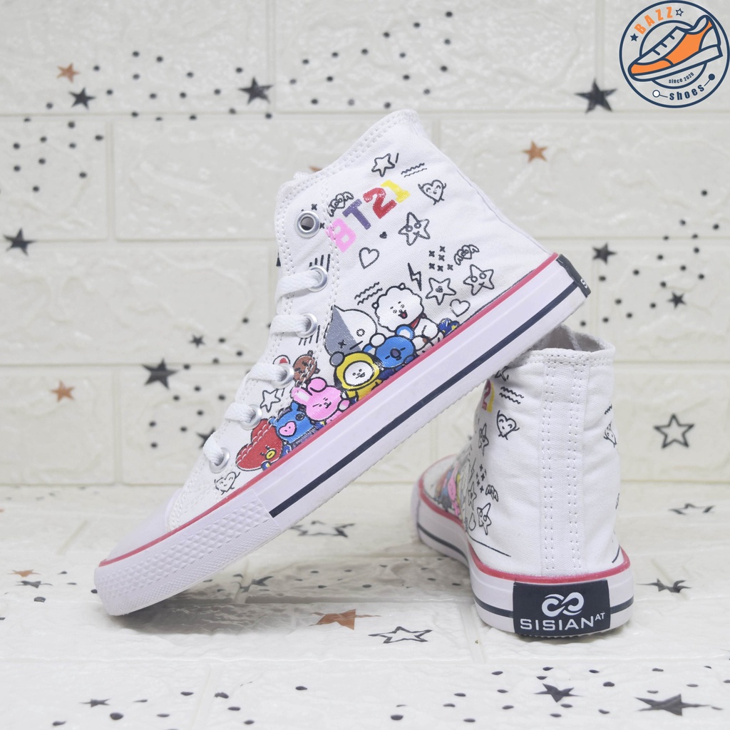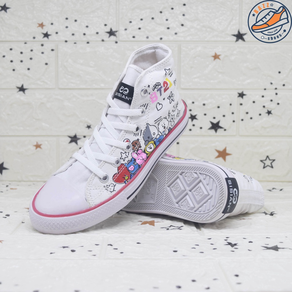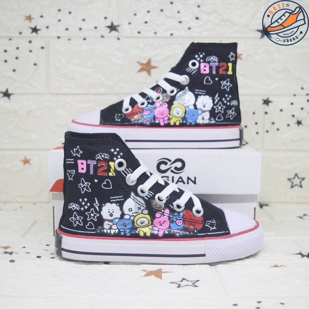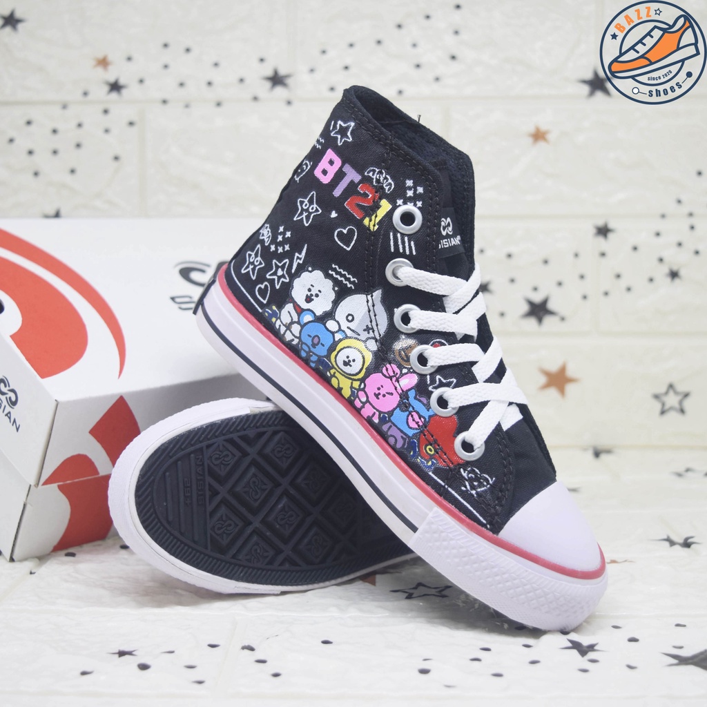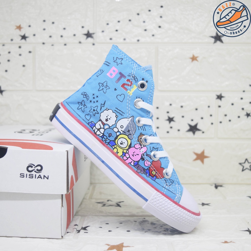 Alasan kenapa harus beli Sepatu Anak Cewek Cowok Sisian BT21 Sneakers Anak Perempuan Laki Laki Boots Tali Canvas Premium Outsole Warna Warni Murah sekarang
