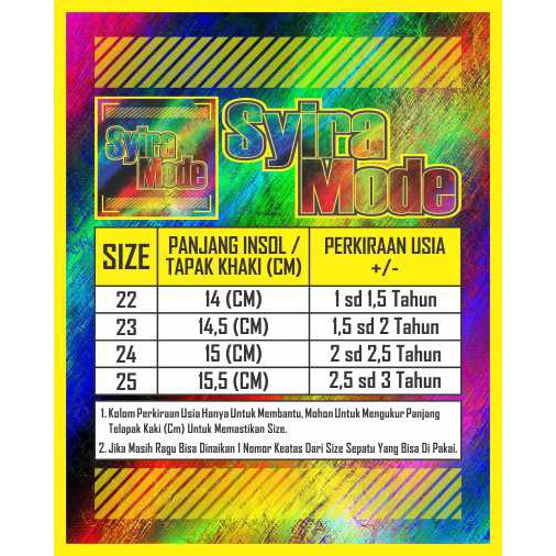 Produk ini memiliki 4 Variasi Ukuran yaitu : 22,23,24,25,