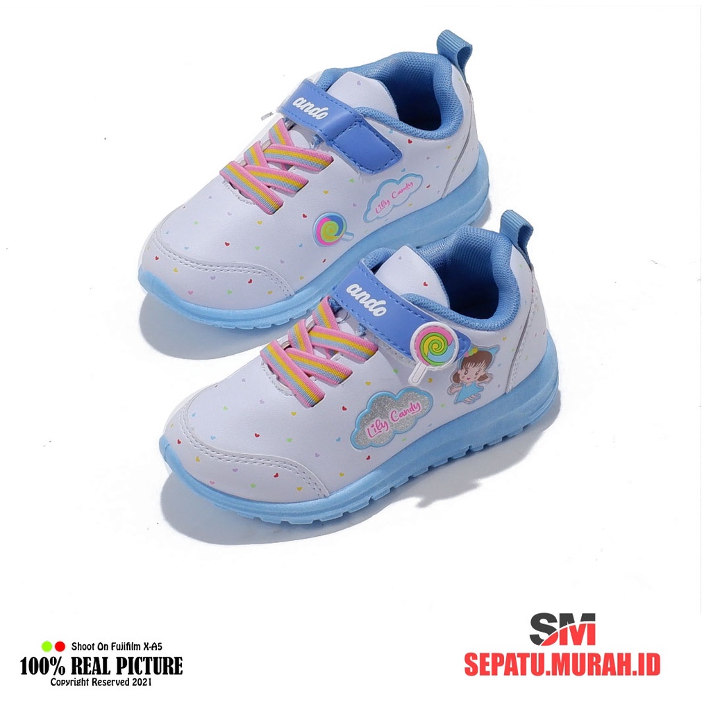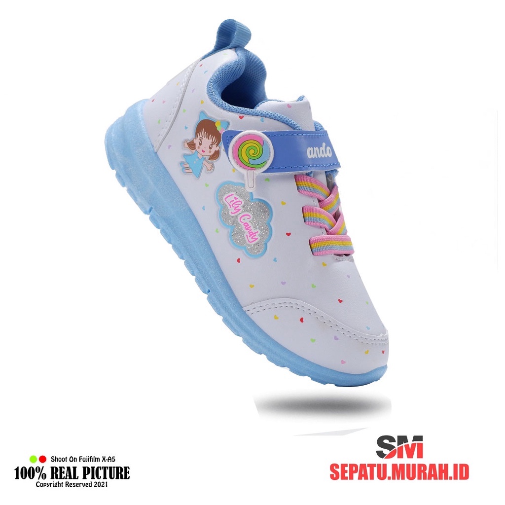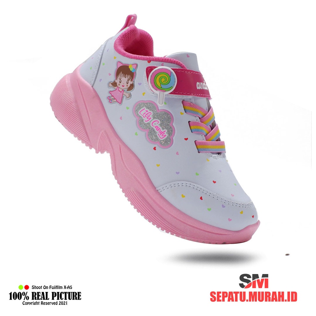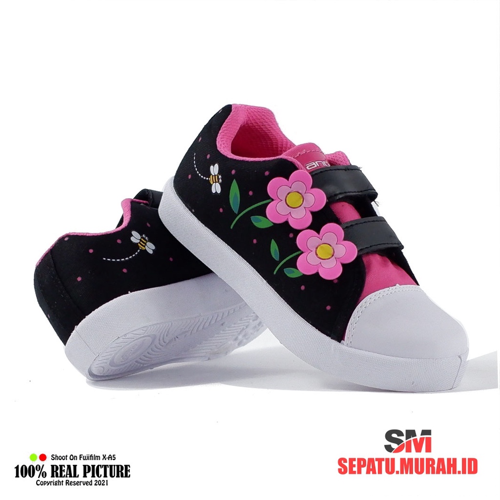 Sepatu anak perempuan perekat velcro original sneakers casual anak-anak cewek sekolah paud dan tk umur 4-7 tahun karakter kwalitas import branded Ando Lily Candy Small Bees promo keren murah cod 25-32