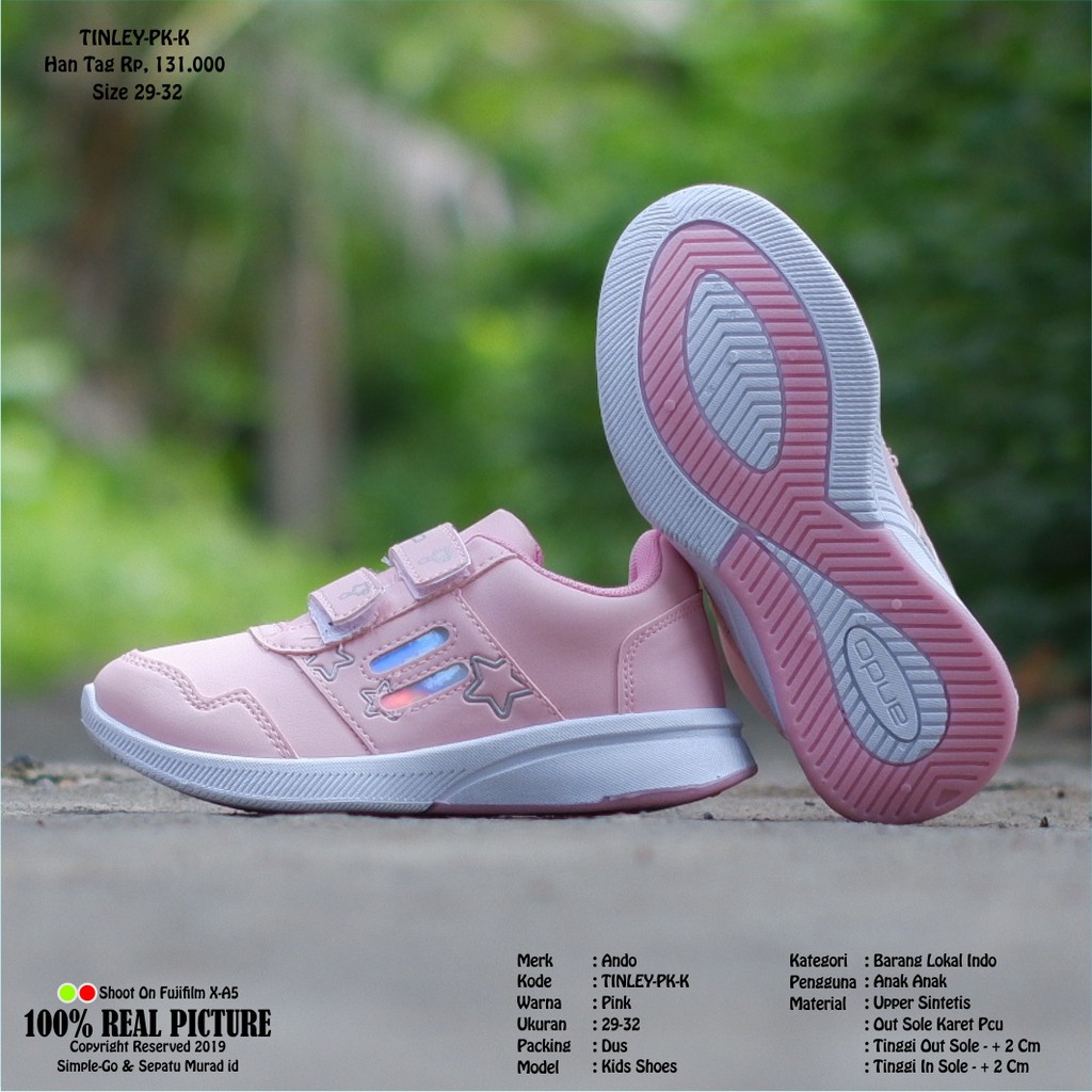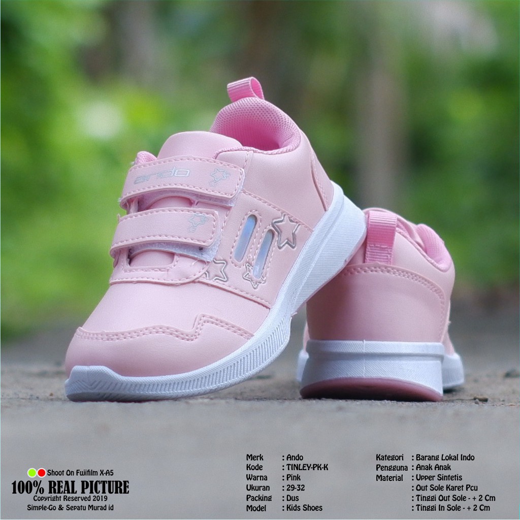 Harga Sepatu anak tk velcro perempuan original Ando Tinley 25-32