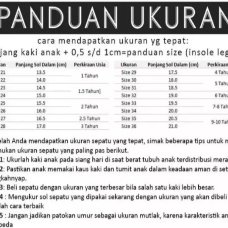 Produk ini memiliki 10 Variasi Ukuran yaitu : 24,21,23,28,30,29,25,27,22,26,