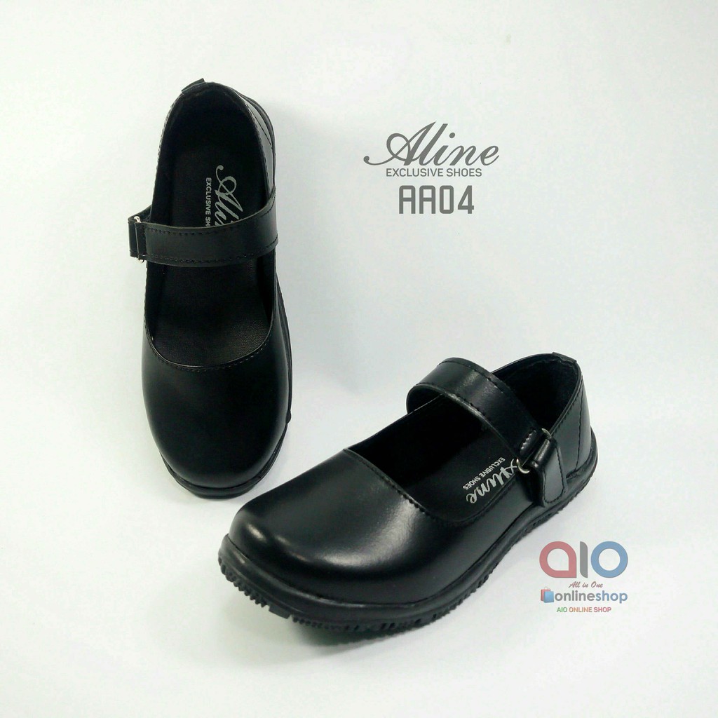 Harga Aline Sepatu Anak Perempuan Size 31-35 Pantofel Paskibra Sekolah Hitam PAUD TK SD Flats AA04