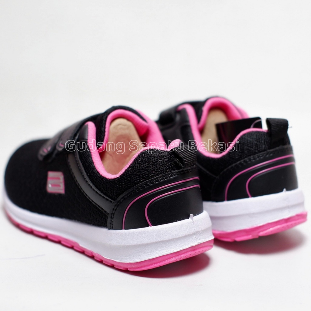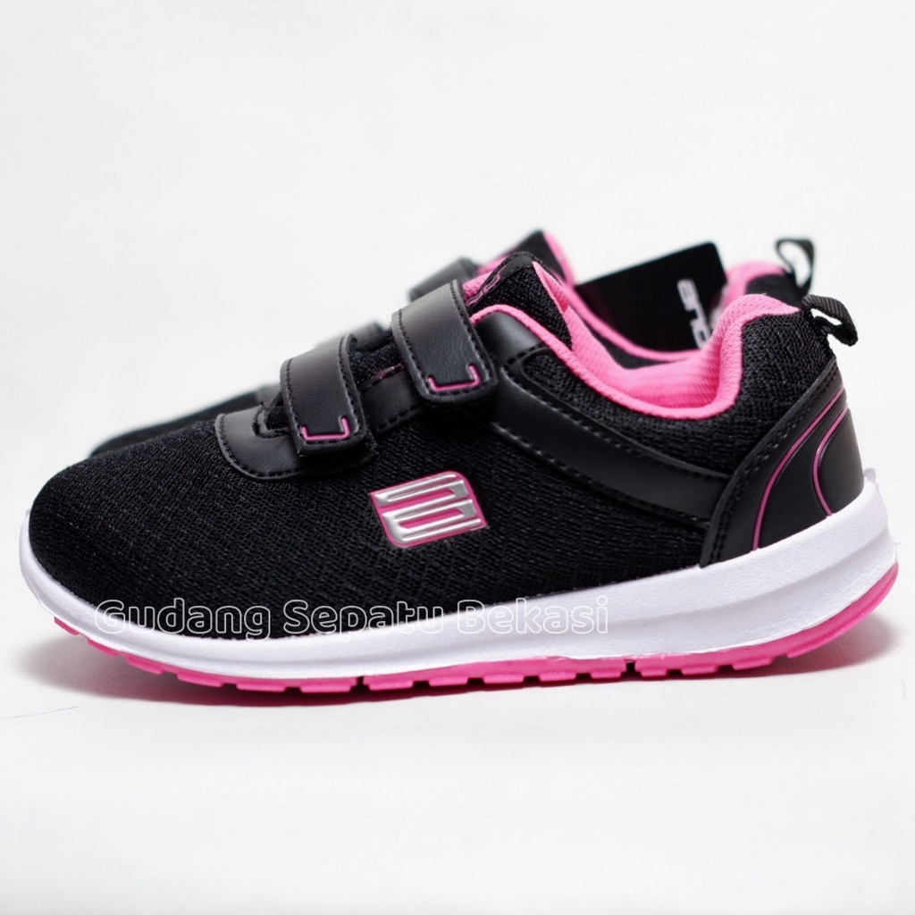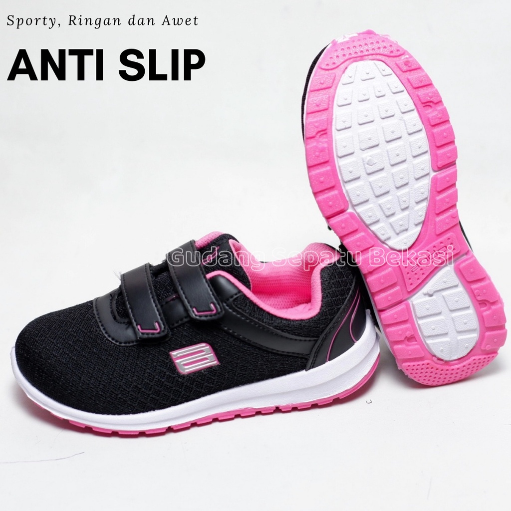 Harga Sepatu Anak Sekolah Perempuan Paud TK Kelas 1 SD Anak-anak Cewek Kecil Ando Perekat Velcro Hitam Full Pink Spatu Sneakers Skolah Usia 4 5 6 7 Tahun Size 29 30 31 32 -Aida Velcro-