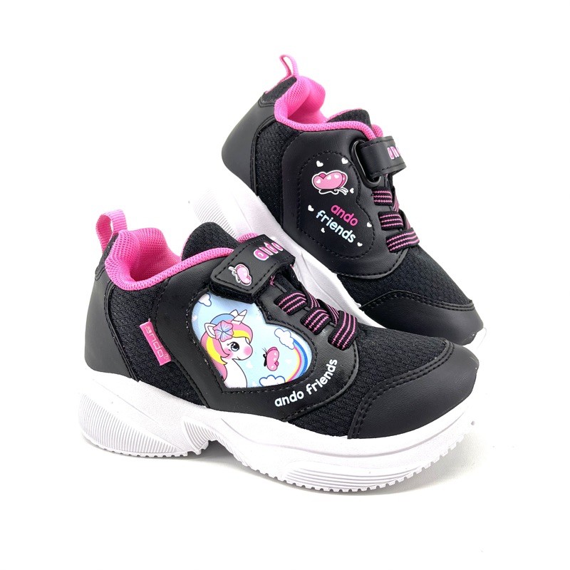 sepatu anak ando minicorn velcro perekat hitam merah jambu black pink fuchsia original